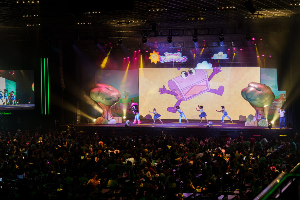 Marcado por interações, conteúdo educativo e magia, a apresentação trouxe músicas autorais marcantes como “Ovinho Mexido” e “Vogais”. Hits da turminha que estimulam a conscientização da escrita, da diversão de poder se expressar por meio da dança e de bons hábitos, como escovar os dentes. Todo o projeto é preparado por especialistas.